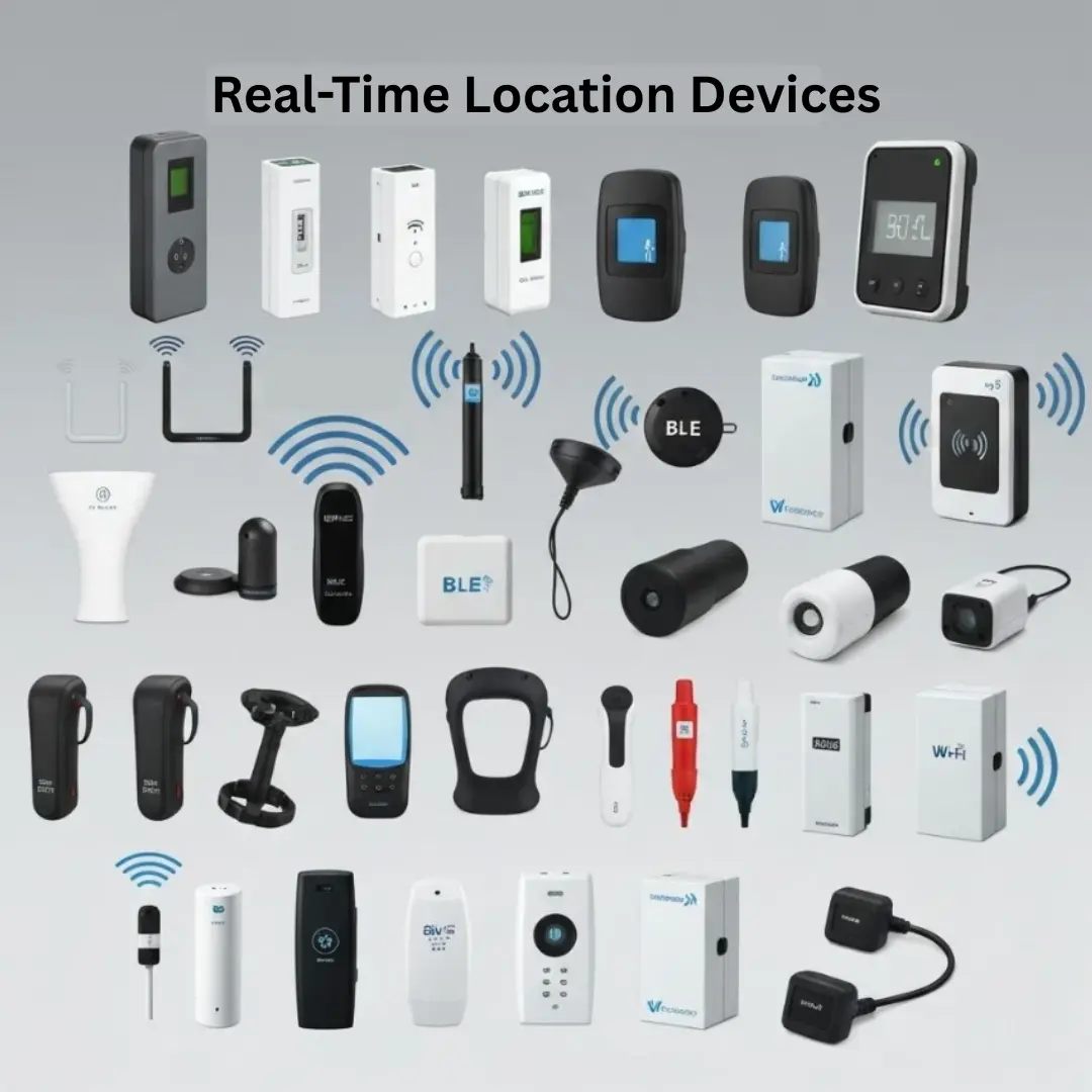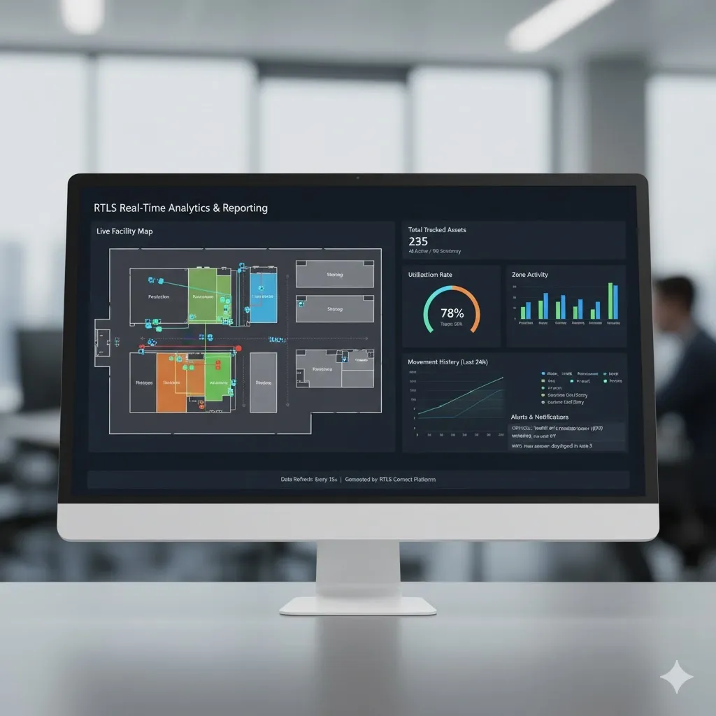 Real-Time Location Systems (RTLS) use various technologies (UWB, BLE, WiFi, SLAM) to track the real-time location of assets, people, and equipment. Tags attached to items communicate with anchors/sensors to determine precise positions, which are then visualized in software platforms.